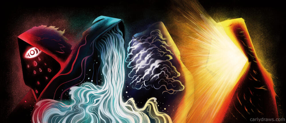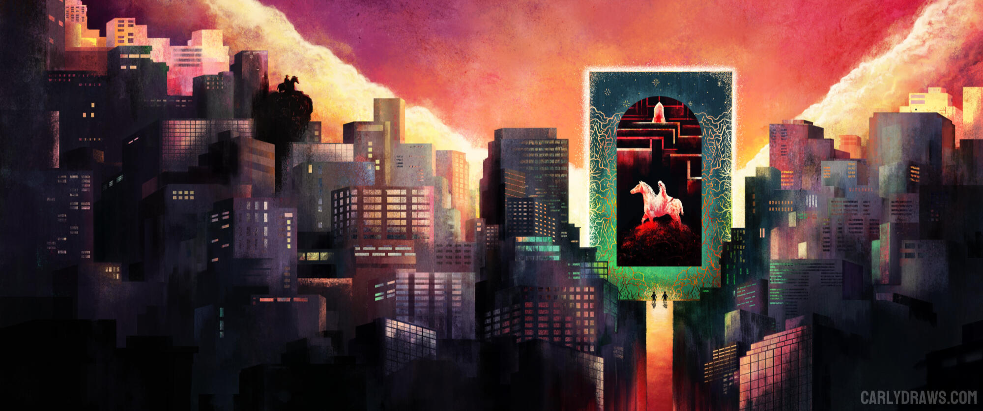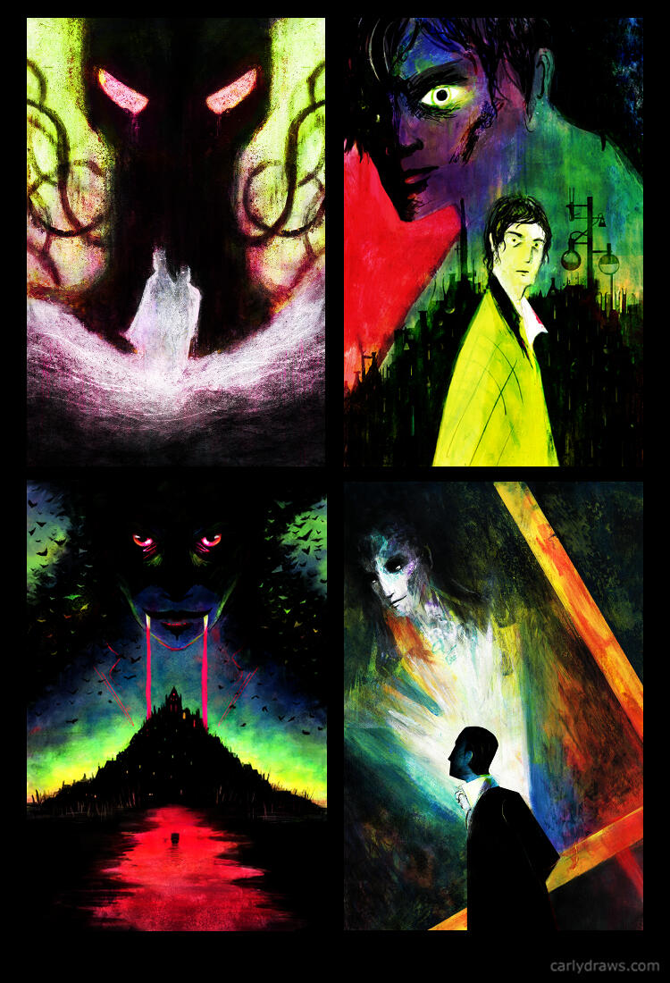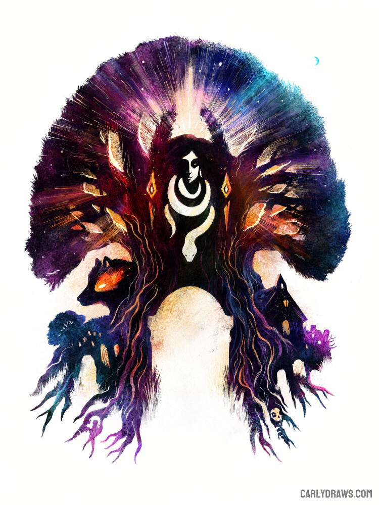 I am Carly A-F, freelance illustrator and author from the UK. My work is a combination of traditional media (charcoal, acrylic paint, pastels, chalk, pencil and ink) mixed with digital colour. I work in sci fi, fantasy and horror, as well as picture books, editorial, games, graphics and more! I am inspired by nature, science, myth and magic.